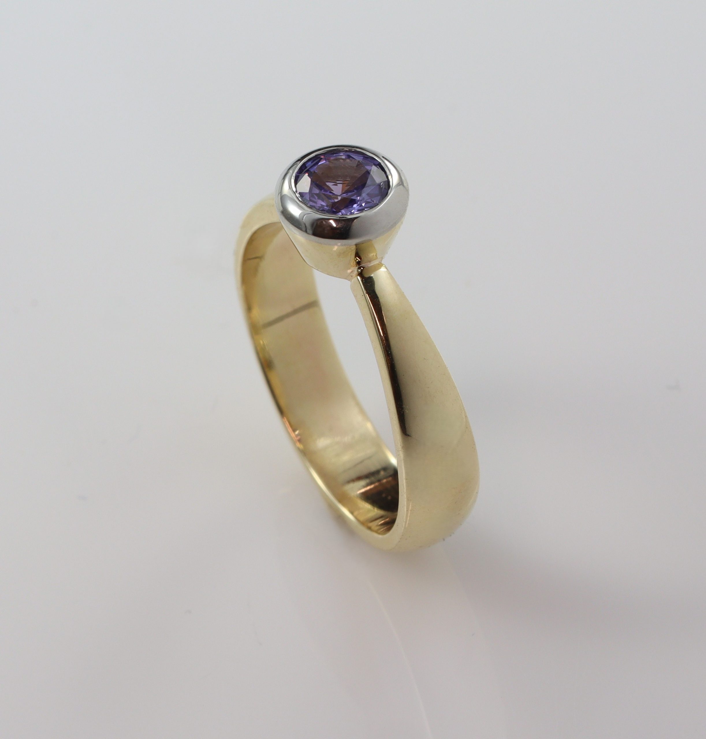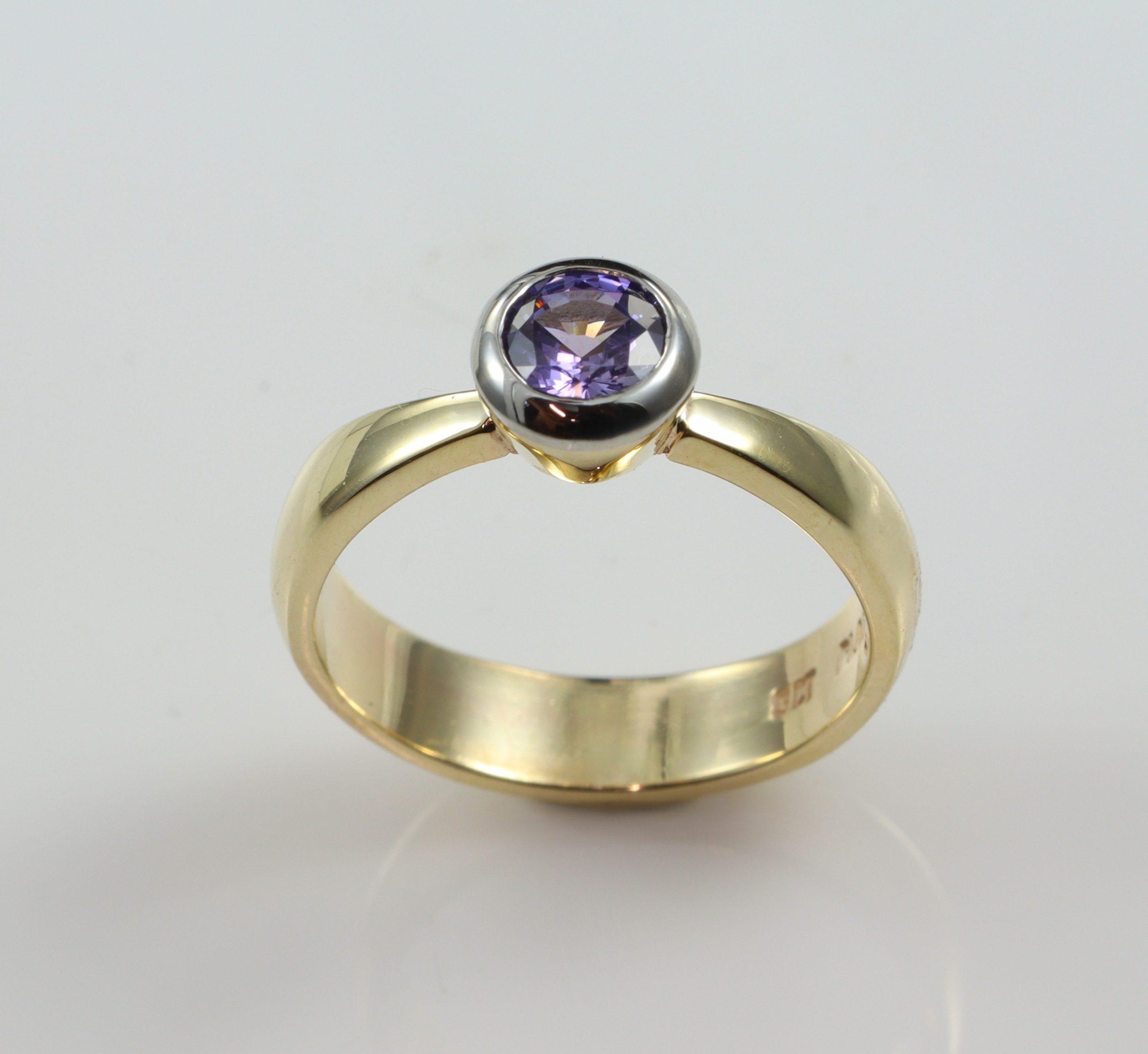 9ct Gold W/ Plat Rub Top & 4.5mm Round Purple Sapphire