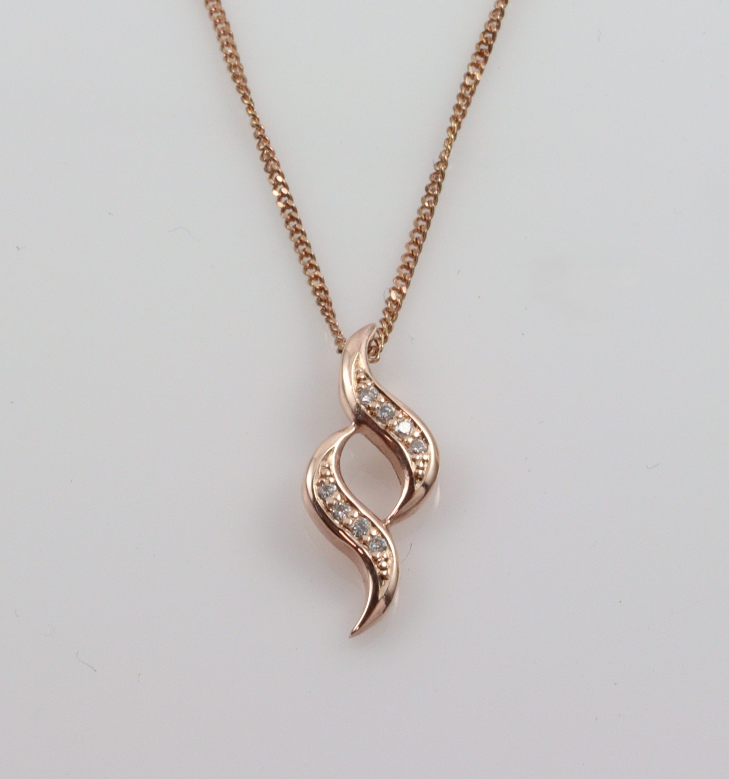 9ct Rose Gold Curved Pendant W/6 Diamonds`(Gold Plated Chain)