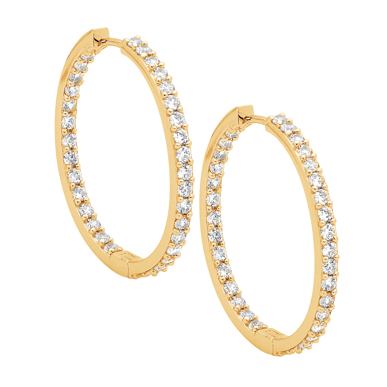 Ellani Stg/silver CZ Inside Out Hoop Earrings w/Gold Plating