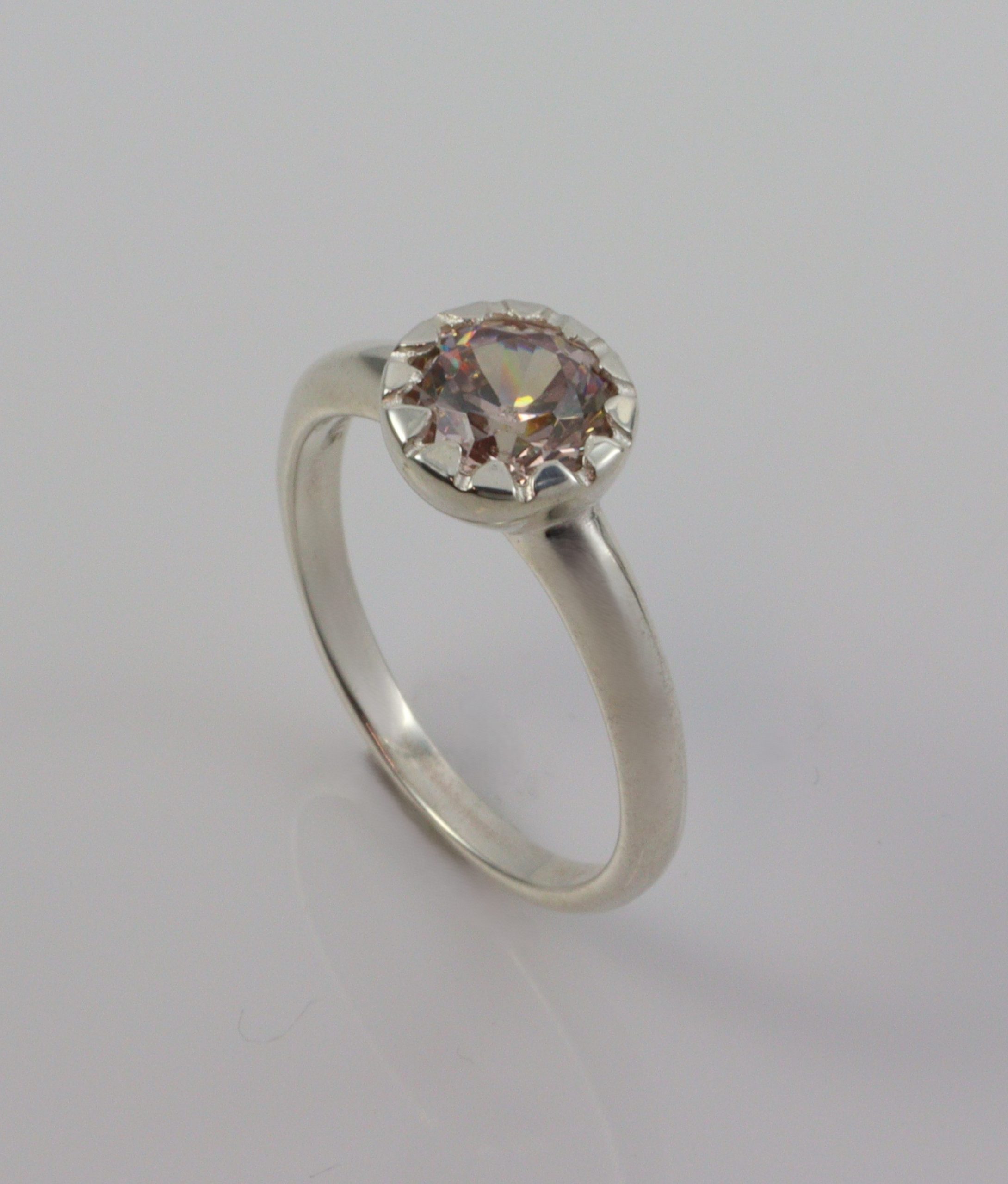 Stg Claw Set Bubble Ring 7mm CZ Colour Change Green/ Grey