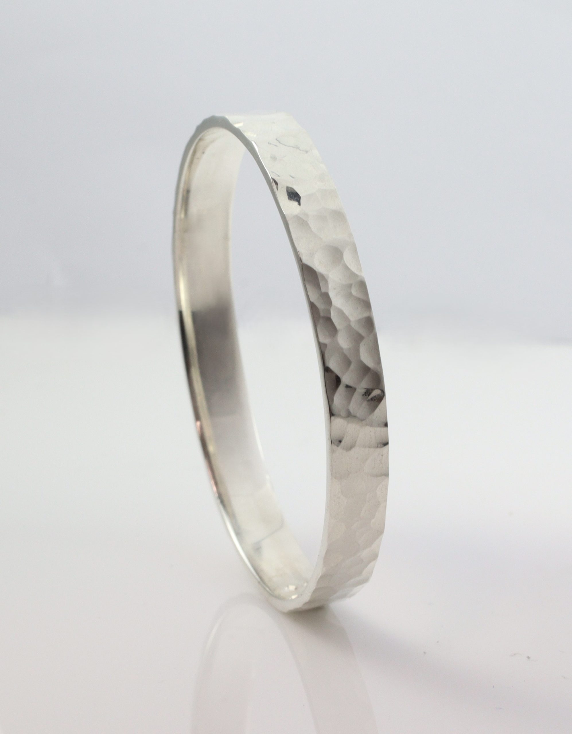 Stg 6.5mm Flat Hammered Finish Bangle Size 6