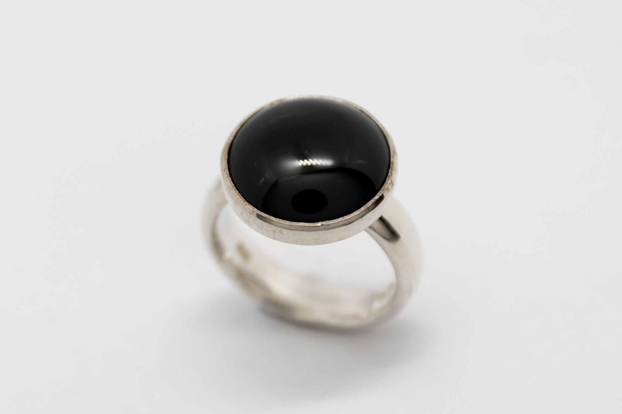 Jewelcraft Sterling Silver Handmade Onyx Ring with a Plain Band