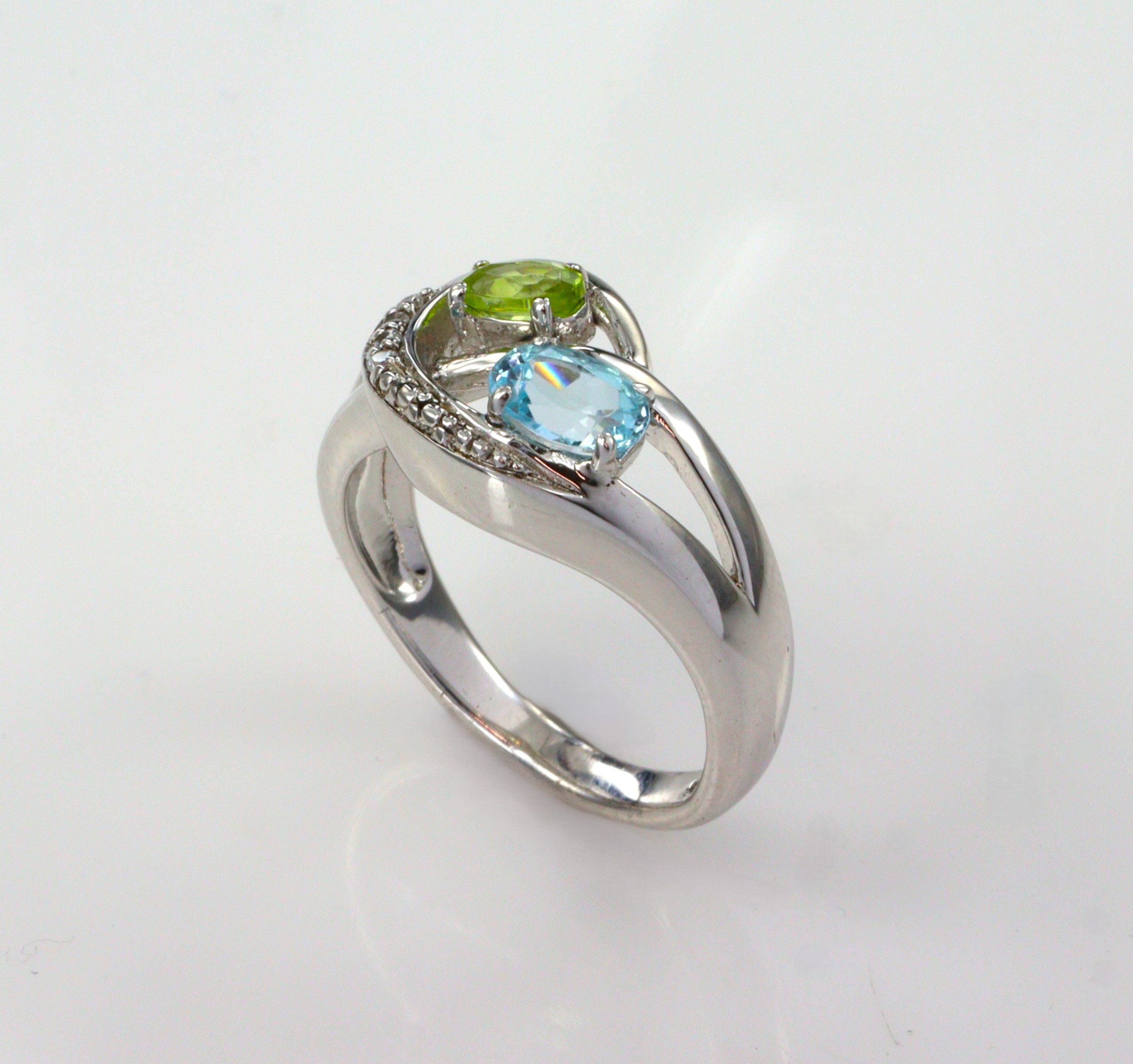 Stg/silver BlueTopaz & Peridot & White Topaz Ring