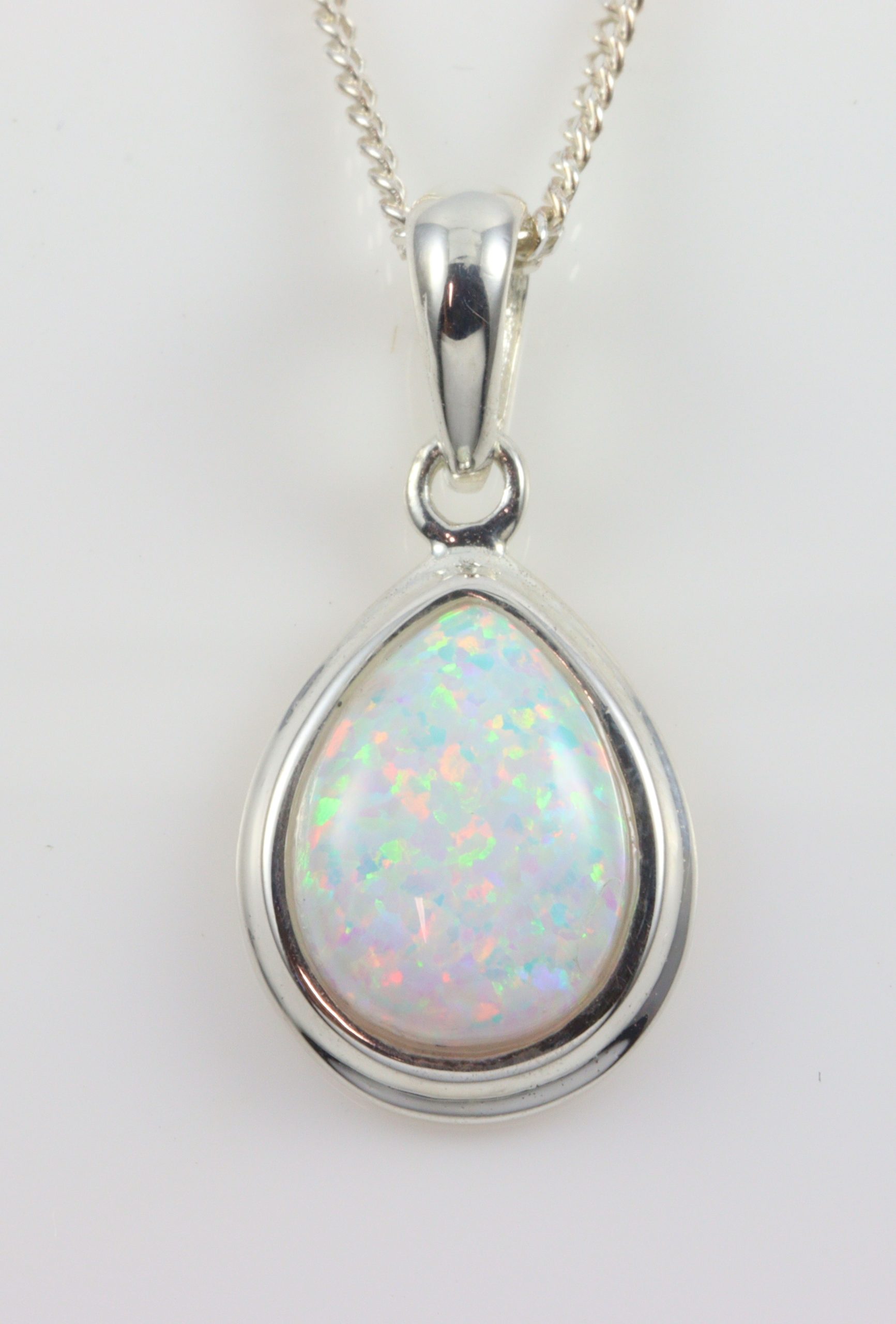 Stg/silver White Teardrop Manufactured Opal Pendant