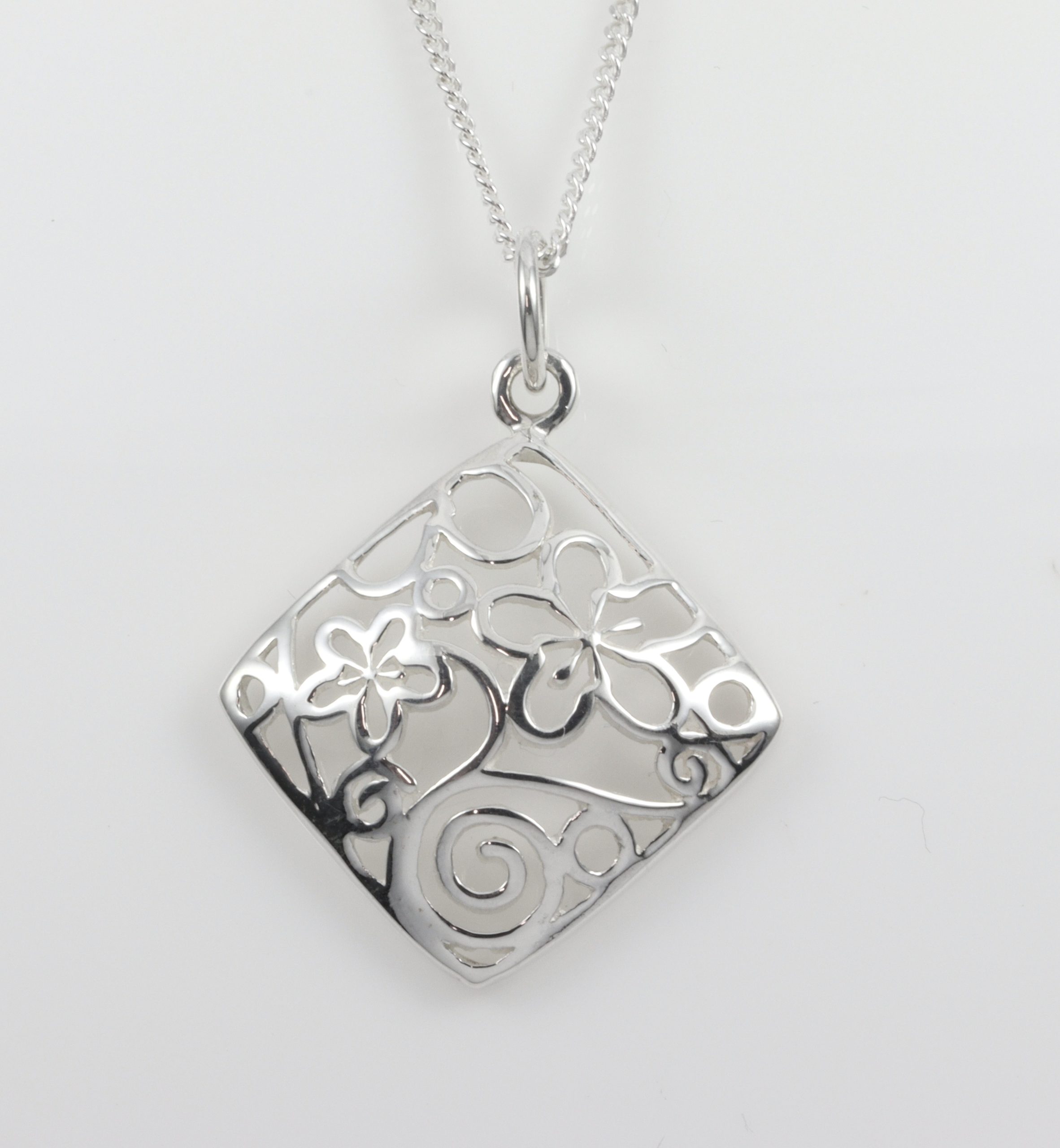 Stg/silver Square Filligree Daisy & Swirl Design Pendant