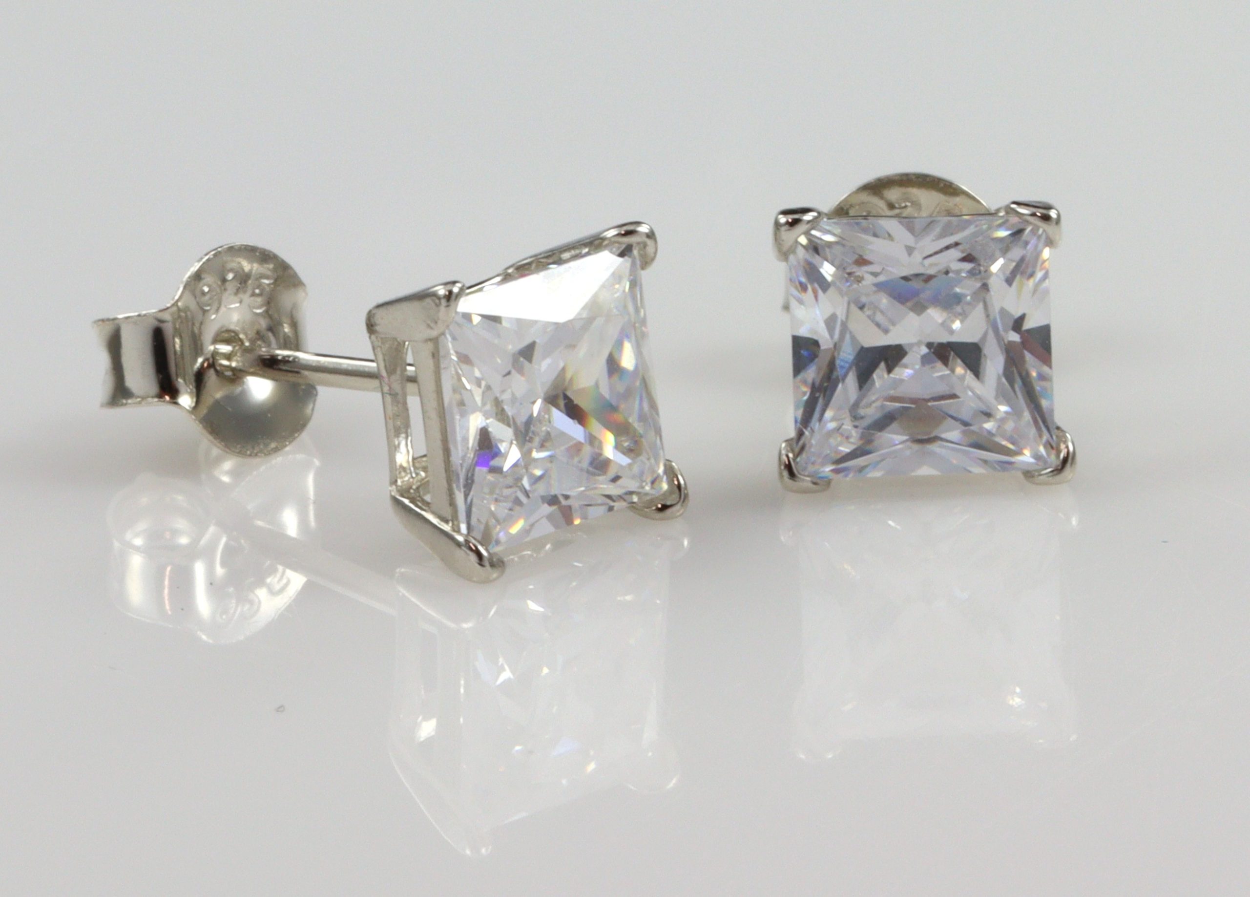 Stg/silver 6MM 4 Claw Square CZ Stud Earrings